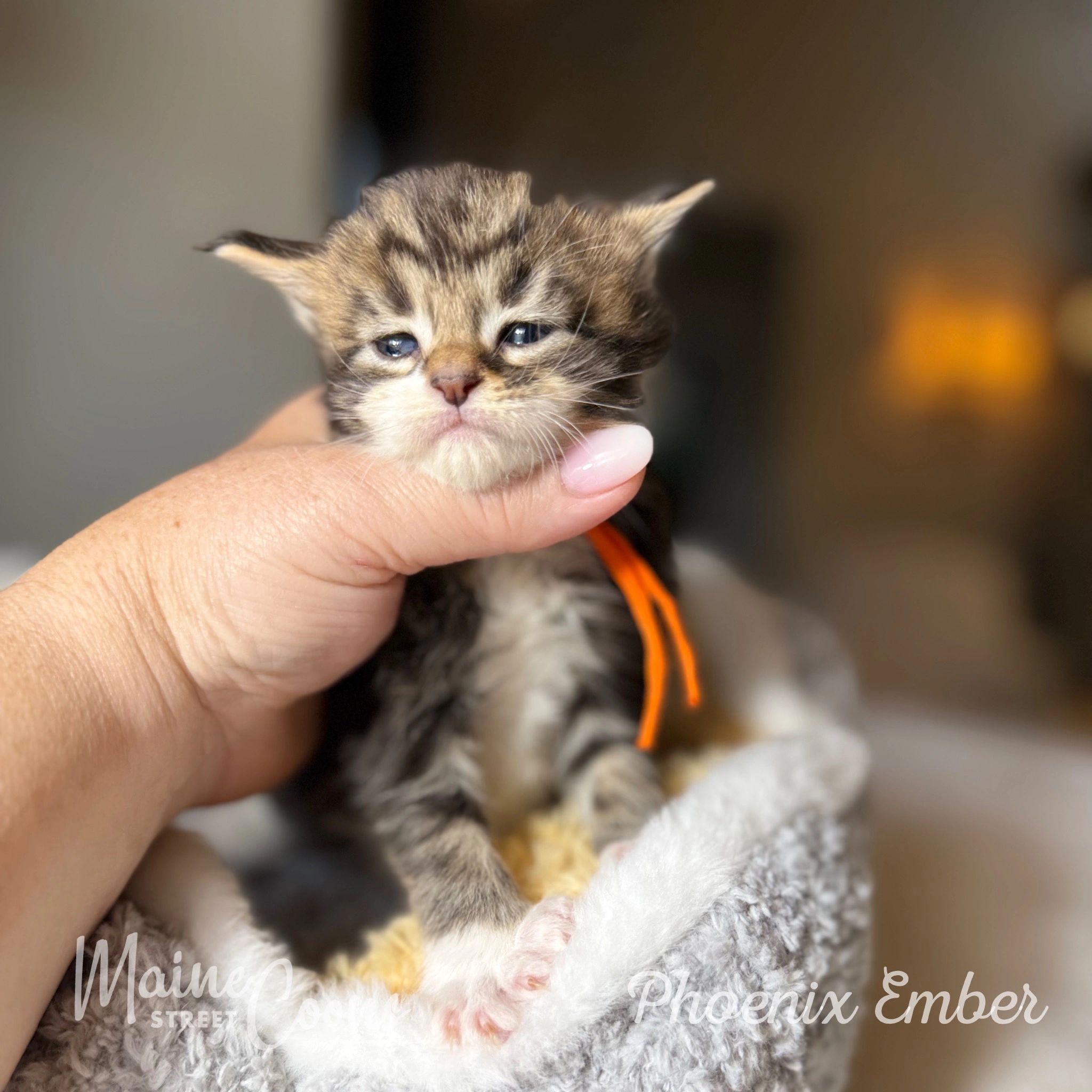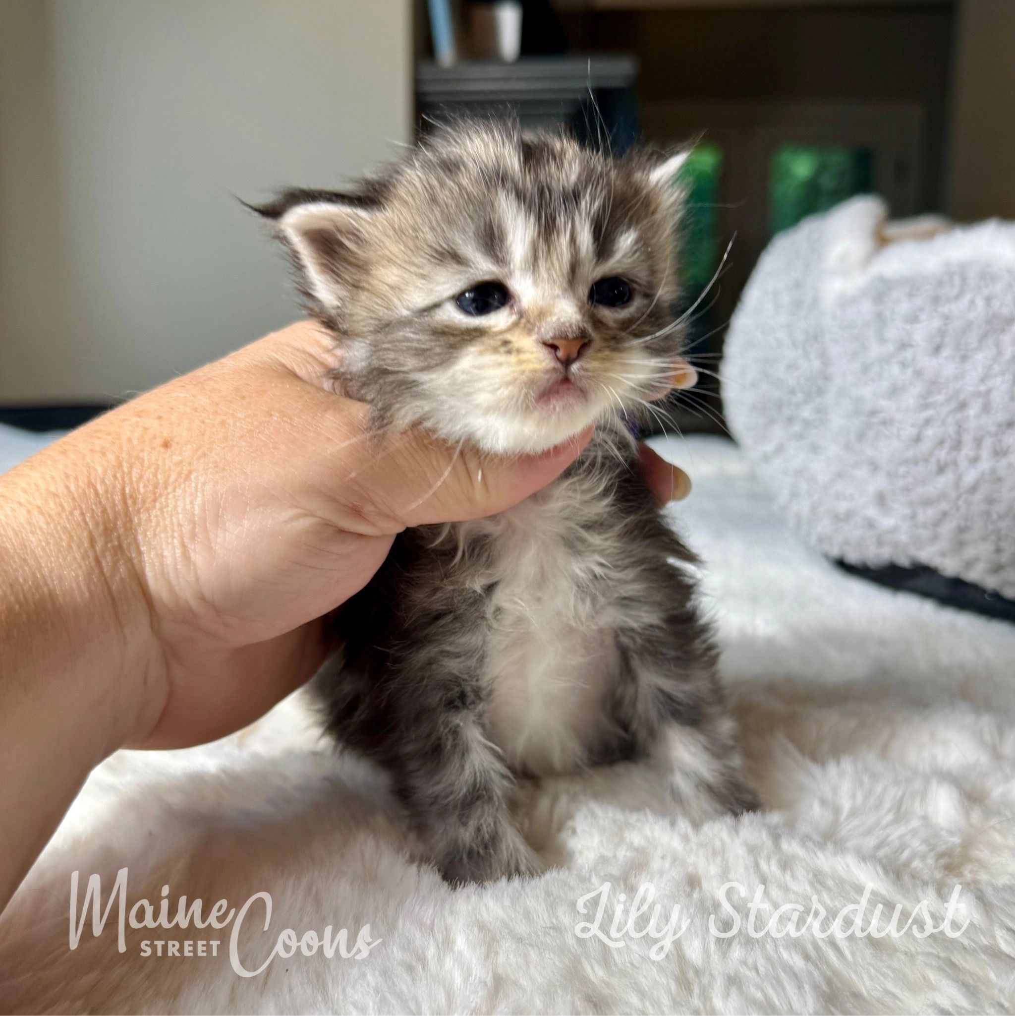 Welcome to our Available Kittens page! Here, you’ll find adorable snapshots of the kittens currently in our nursery or growing up underfoot in the heart of our home. Each photo captures a glimpse of their playful personalities, unique markings, and the love and care they receive every day. Take a moment to meet the newest members of the Maine Street Coons family—you might just find your future companion!