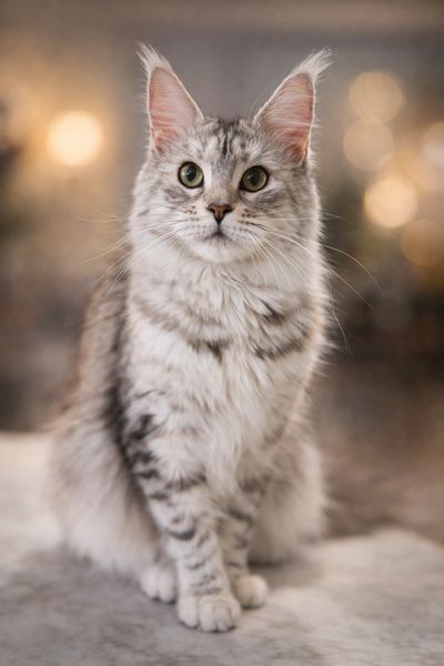 Meet MaineStCoons Carbon Copy, affectionately known as CiCi—a true gem in our breeding program and a testament to the beauty and grace of her lineage. As the spitting image of her stunning mother, one of our cherished foundation queens, CiCi carries forward a legacy of excellence. Her breathtaking light silver mackerel torbie coat shimmers with delicate patterns, perfectly complemented by her large, expressive green eyes that captivate everyone she meets.