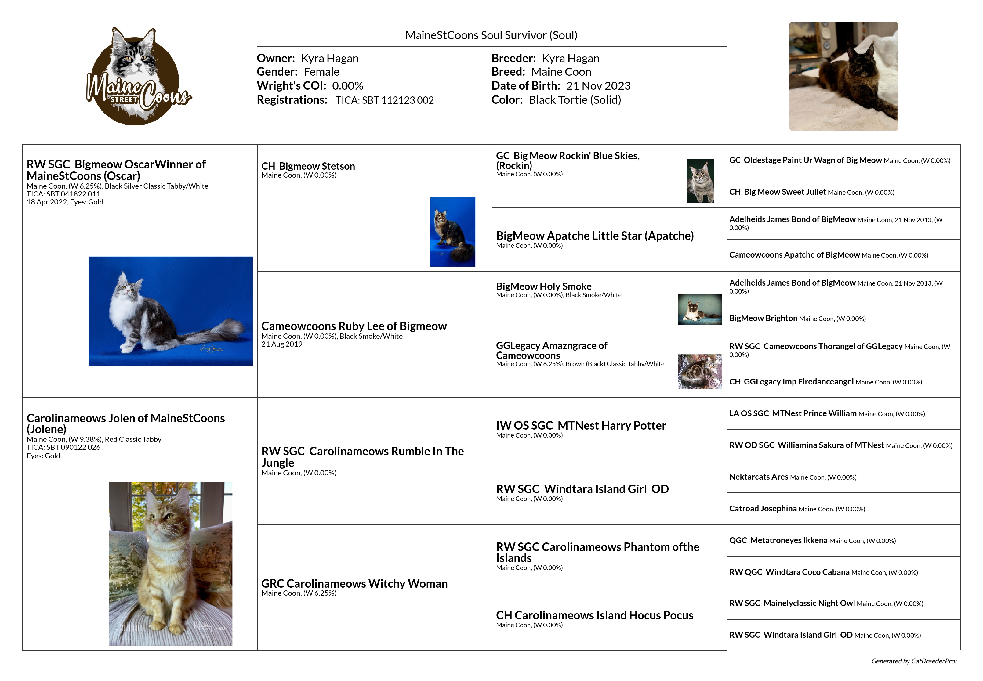 Here is a link to Soul’s pedigree, showcasing her impressive lineage and the exceptional qualities she passes on to her kittens. If you’re searching for a Maine Coon kitten with a winning combination of beauty, brains, and a loving personality, look no further than Soul’s extraordinary babies.