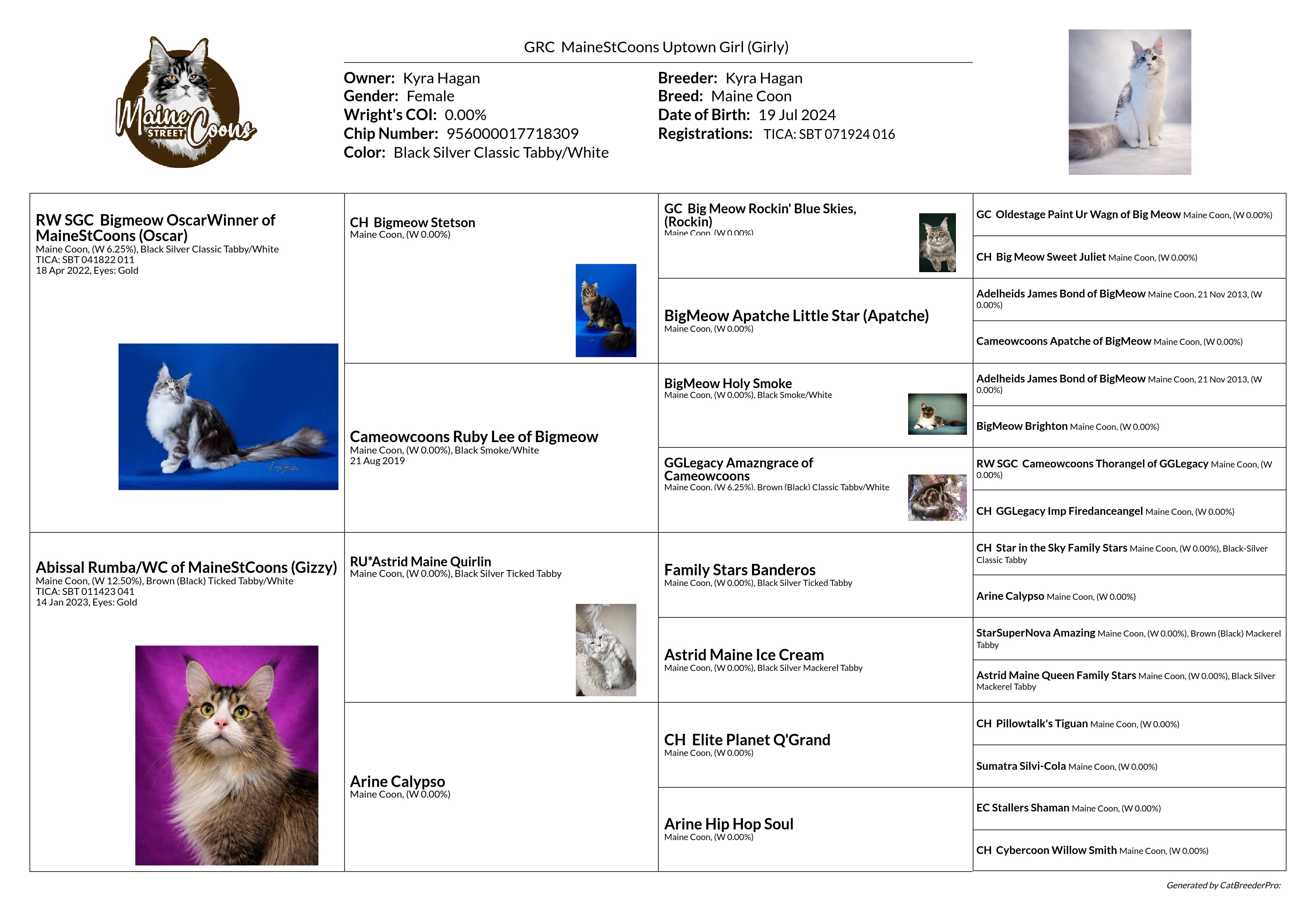 Explore Girly’s impressive pedigree online and discover why her kittens are the perfect addition to any Maine Coon-loving home.