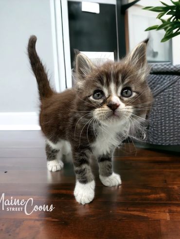 𝕄𝕒𝕚𝕟𝕖𝕊𝕥ℂ𝕠𝕠𝕟𝕤 ℂ𝕙𝕒𝕣𝕞𝕚𝕟’ ℂ𝕙𝕒𝕣𝕞𝕚𝕟 aka "Moose" l Brown Classic Tabby with White l Male l 11 Weeks Old l Reserved for Sarah